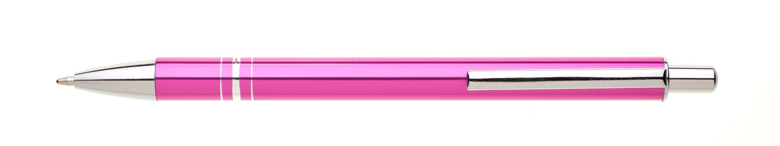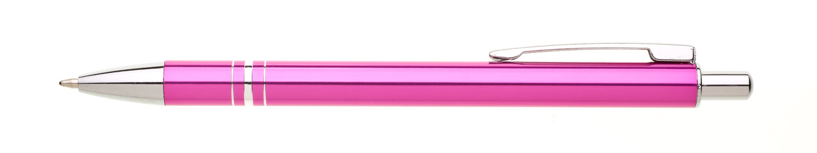 Kuličkové pero RENZA NEW s novým klipem je vyrobeno z hliníku, je v růžové barvě, na úchopové části má 3 stříbrné proužky. Tužka má pochromované doplňky jako jsou špička, klip a cvakátko. Náplň X 20 - 10,7 cm, modře píšící.