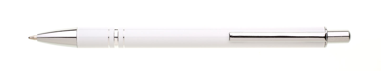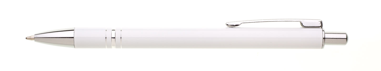 Kuličkové pero RENZA NEW s novým klipem je vyrobeno z hliníku, je v bílé barvě, na úchopové části má 3 stříbrné proužky. Tužka má pochromované doplňky jako jsou špička, klip a cvakátko. Náplň X 20 - 10,7 cm, modře píšící.